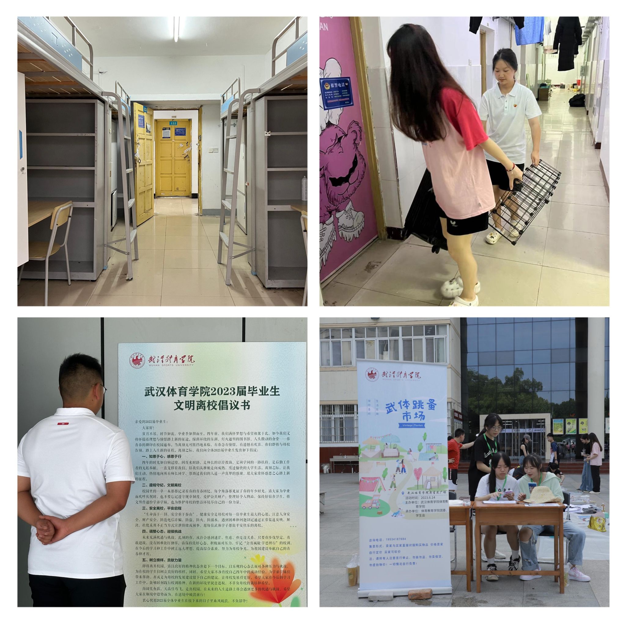 据悉,我校将文明离校工作作为今年毕业季开展的重点工作之一,各学院围绕毕业生文明离校开展了相关活动。体育教育学院、艺术学院等举办了毕业季跳蚤市场,让毕业生提前处理闲置物品。运动训练学院、网球学院等举行文明离校动员大会,张贴文明离校倡议书,组建党员先锋队协助开展相关工作,为学校毕业季安全稳定提供了保障。