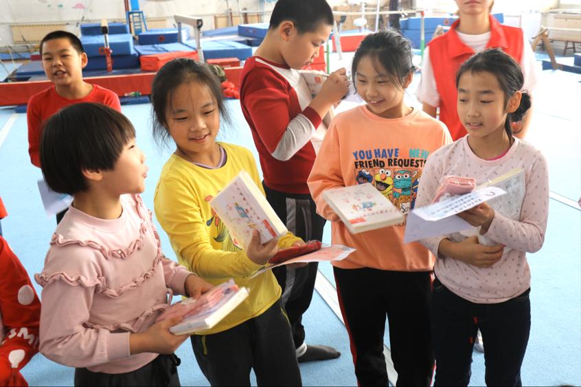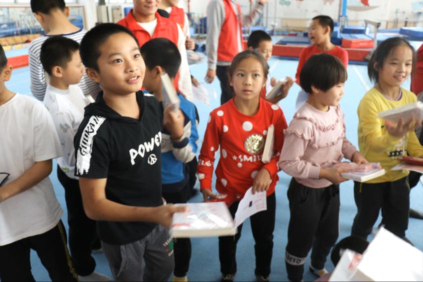 本次活动主题并表明活动目的是希望更多的人群关注体操宝宝的健康与成长,给予精神与物质上的支持和关爱,让正能量在校园、在社会广为传播。随后,在志愿者充分了解到在我校长期接受体操训练的宝宝们的小手有的被冻伤或磨损起茧,当下的小学生们喜爱用可擦笔写作业的情况后,便为在游戏中获胜的体操宝宝们送去了温暖手套以及学习文具。