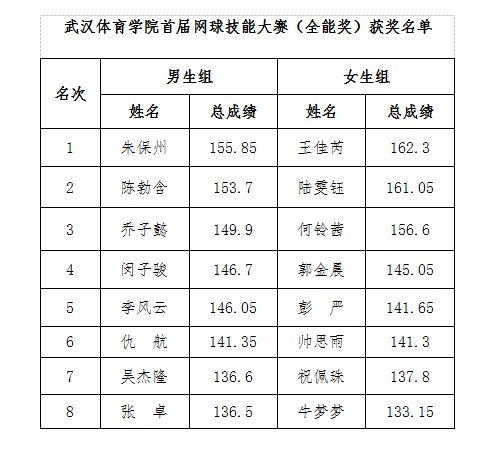 经过激烈角逐,首届网球技能大赛于18日完美落幕。具体获奖名单如下: