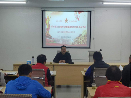 次日上午,武术学院召开师德师风座谈会。会中,王良明对“优良师德师风的建设是怎样的?如何打造优良师德师风?”两个问题做了具体讲解。并对武术学院当前教师队伍做了充分肯定,希望同志们不断学习加强党性建设从而打造优良的教师队伍。