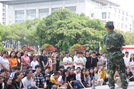 然后讲解了如何进行火场逃生,并组织在场所有的同学进行了模拟逃生的演练。