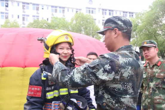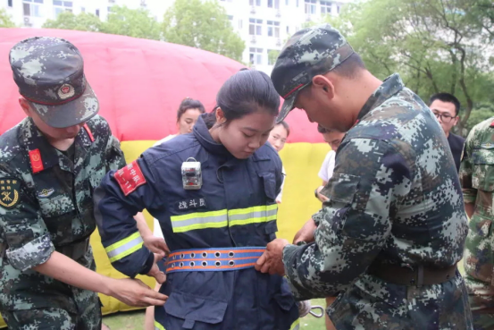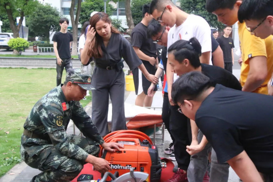 紧接着向同学们展示并一一介绍了消防单兵装具的功能和穿戴方法。