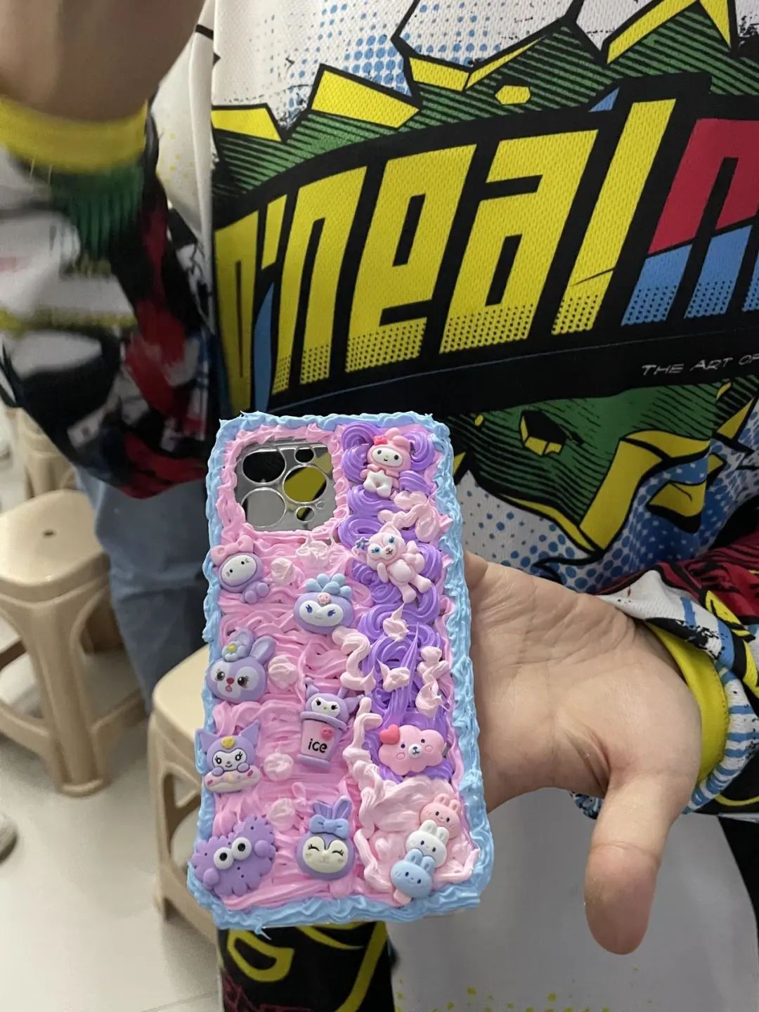 将彩色的奶油胶挤到手机壳上,用棉签将奶油胶涂抹均匀,放上可爱的配件,运用小物件将手机壳进行点缀,再稍稍调整一下,在一番创造力大比拼后,一个独一无二的手机壳就做好啦!