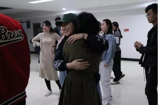 活动过程中有无助的“盲人”,有笑到弯腰的“哑巴”,更有无微不至呵护着搭档的同学。游戏结束后,同学们摘下眼罩,激动地和同伴紧紧地拥抱在一起。