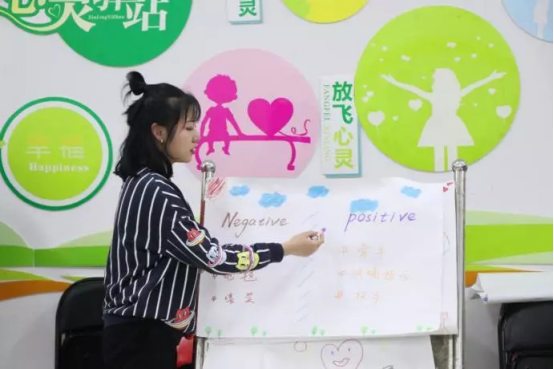 在做完活动后,同学们坐进团辅教室,一笔一画的回顾在暖心导盲中的点点滴滴,总结什么样的沟通让沟通双方可以彼此温暖、相互支持。